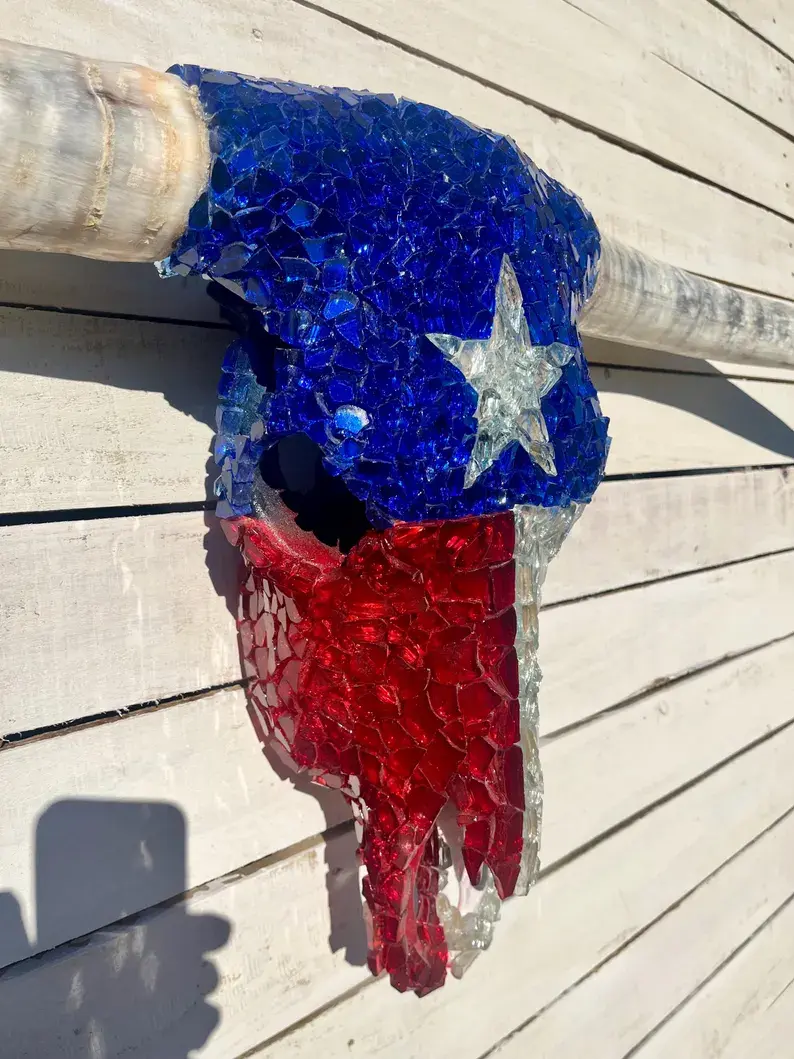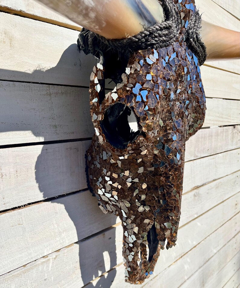 Add some western flair to your home décor with our stunning Personalized Cow Skull or Rugs. Handcrafted from ethically sourced cows, each piece is truly one-of-a-kind and features intricate detailing. Our cow skulls are adorned with fire glass in the color of your choice, adding a unique and personalized touch to each piece. Hang it in your living room, bedroom, or even outdoors to add a rustic and elegant touch to any space. Whether you're a fan of western décor or simply love the natural beauty of cow skulls, our Personalized Cow Skull is the perfect statement piece for your home.